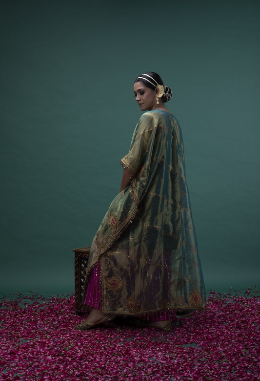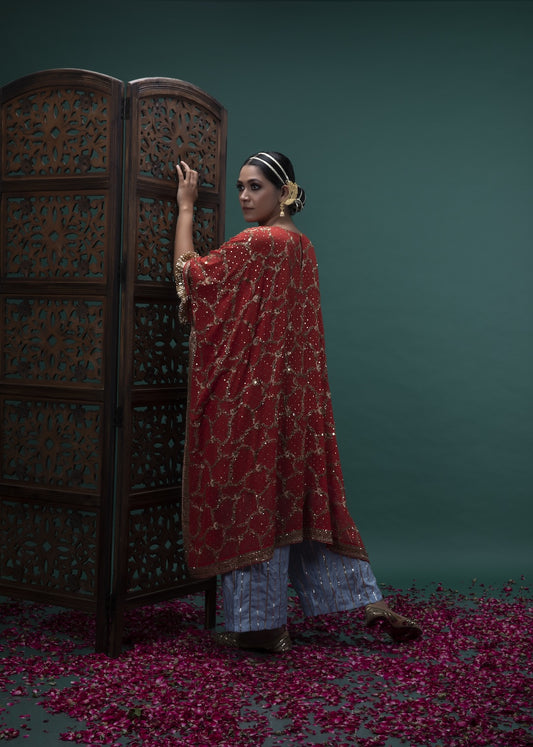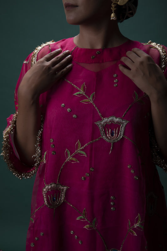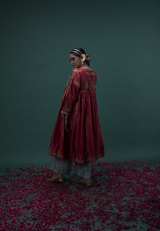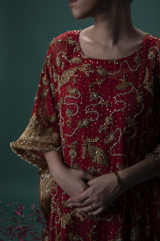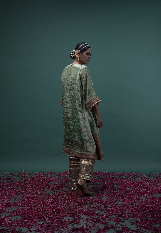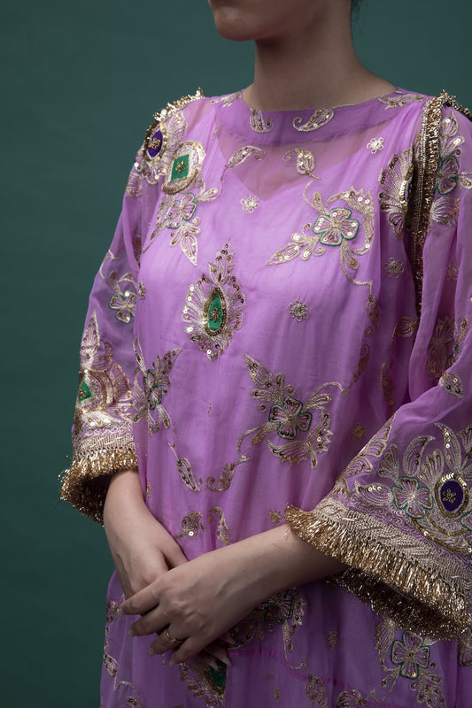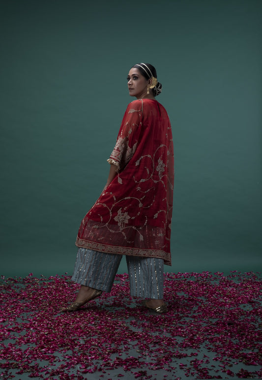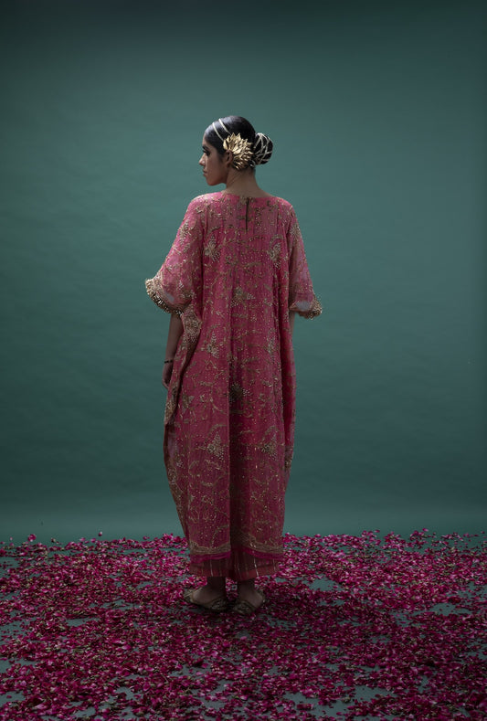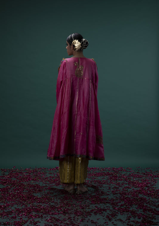 Delicate gota work on chanderi silk and kaftans with vintage-inspired zardozi embroidery are some highlights of our debut Festive ’22 collection. Each piece is exclusively made using exquisite fine silks, meticulously adorned with intricate embroidery and evokes a feeling of majesté – an era of bygone elegance.